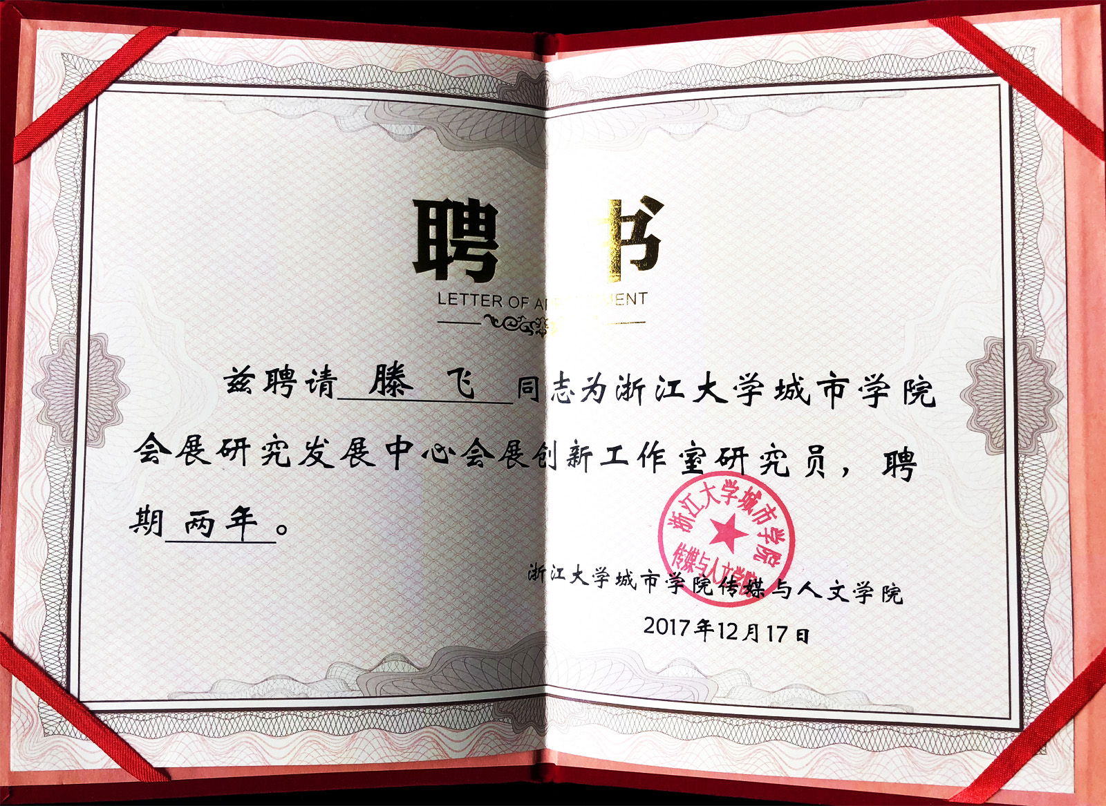 茲聘請滕慶磊同志為浙江大學(xué)城市學(xué)院會展研究發(fā)展中心會展創(chuàng)新工作室研究員,聘期兩年。